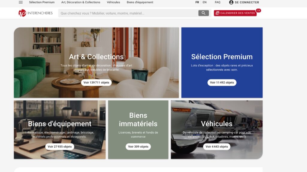 Le site Interenchères centralise les ventes aux enchères de centaines de maisons de ventes françaises. C’est un outil de recherche puissant, avec une navigation intuitive, un moteur de recherche avancé, et des alertes personnalisées. Vous pouvez consulter les lots disponibles, lire les descriptions détaillées, suivre une vente live, ou poser un ordre d’achat en ligne. Chaque vente est encadrée par un commissaire-priseur, avec un catalogue clair et des conditions affichées. Le site garantit l’accès à des ventes judiciaires et volontaires, dans tous les domaines : objets d’art, meubles, voitures, bijoux, etc. Grâce à sa réputation solide, Interenchères est devenu un acteur incontournable des enchères en France, plébiscité par amateurs, professionnels, et curieux. L’inscription est gratuite, et le site propose un service client réactif, une interface fluide, et un calendrier des ventes à consulter jour après jour, avec tous les types de ventes bien classés.